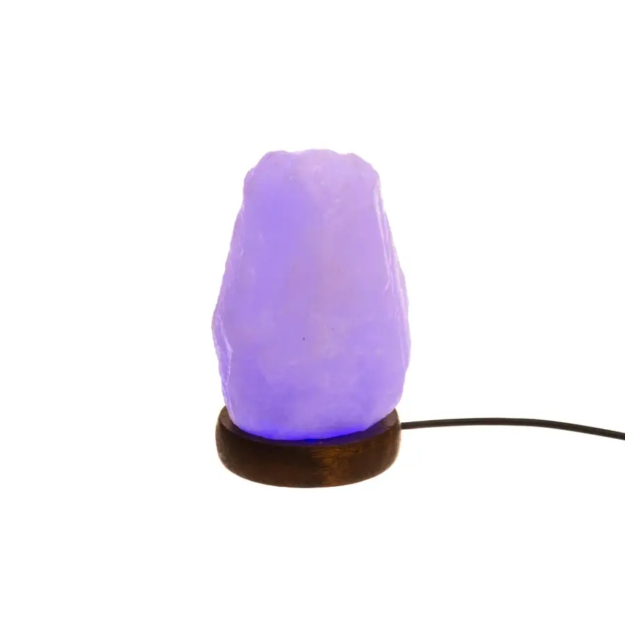 The Multicolor LED salt lamp has color-changing LED lights with a USB connection. The lamp can be plugged into a USB port on your computer.