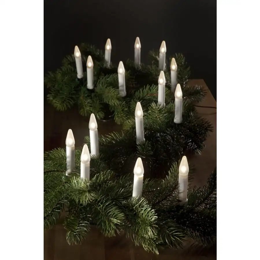 Beautiful matte candles in one strip. Led warm white, not replaceable. Material plastic. Cord and mounting part dark green.