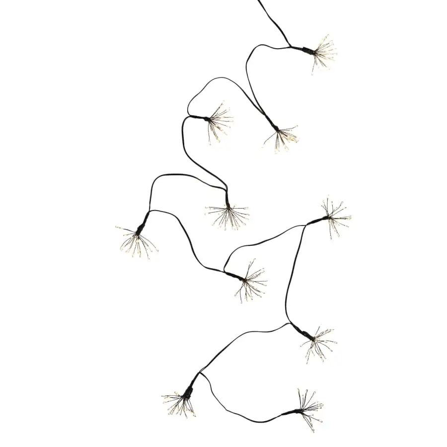 Light decorations in ”flowers” of 20 LEDs, always every 20 cm. LED bundles can be bent. A total of 200 warm white LEDs in the 2 m long light series.