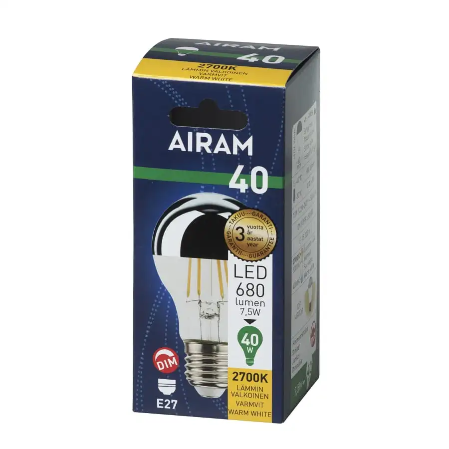 Ett lampset som täcker de viktigaste hembelysningsbehoven, alla modeller kan dimras med LED-dimmer. Dimmbarheten indikeras av den mycket distinkta DIM-symbolen. Färgtemperaturen på lamporna är behagligt varmvit (2700 K). Den opala ljuskällan ger bländfritt ljus. Den miljövänliga kartongförpackningen är färgkodad. Färgen indikerar glödlampans motsvarighet och gör valet enklare.