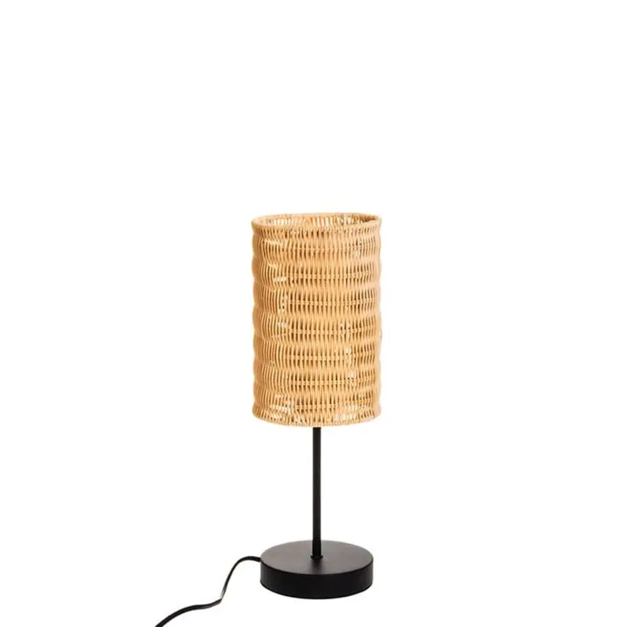 A table lamp for a modern Scandinavian home with a black metal base and a straight shade woven from light rattan that brings warmth and closeness to nature. Total height 38.5cm.