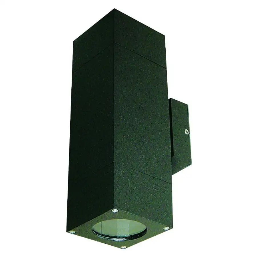 Bredd 6 cm, Djup 10,5 cm, Höjd 19,5 cm, Material metall, 2xGU10 lampfot 4W 3000K 360lm LED-lampor ingår, IP44.
