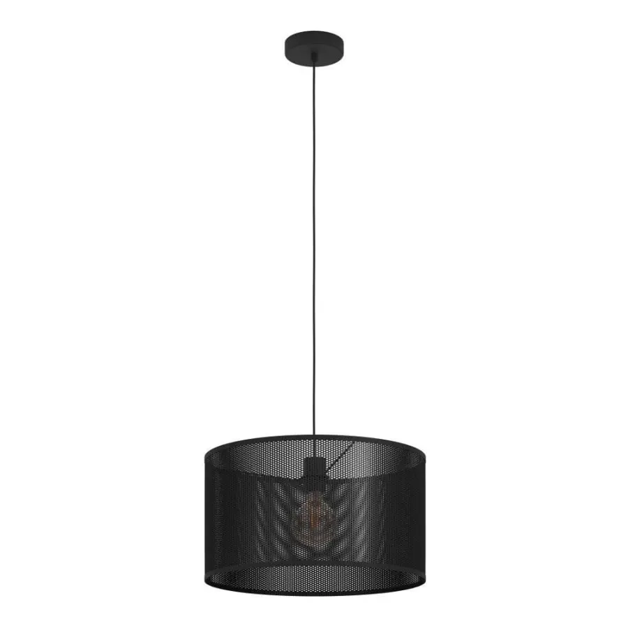 The MANBY pendant light has a round lampshade made of black metal. The shade is suspended from a metal canopy of the same color with a black textile cable. Fascinating plays of light and shadow are created through the grid as soon as the lamp is switched on. The hanging lamp in a monochrome industrial look rounds off discreetly modern furnishing styles and offers atmospheric lighting for every room – whether in the living room, bedroom or dining room above the dining table. The filament bulb is not included in the package. The lamp is suitable for any lamp with an E27 base.