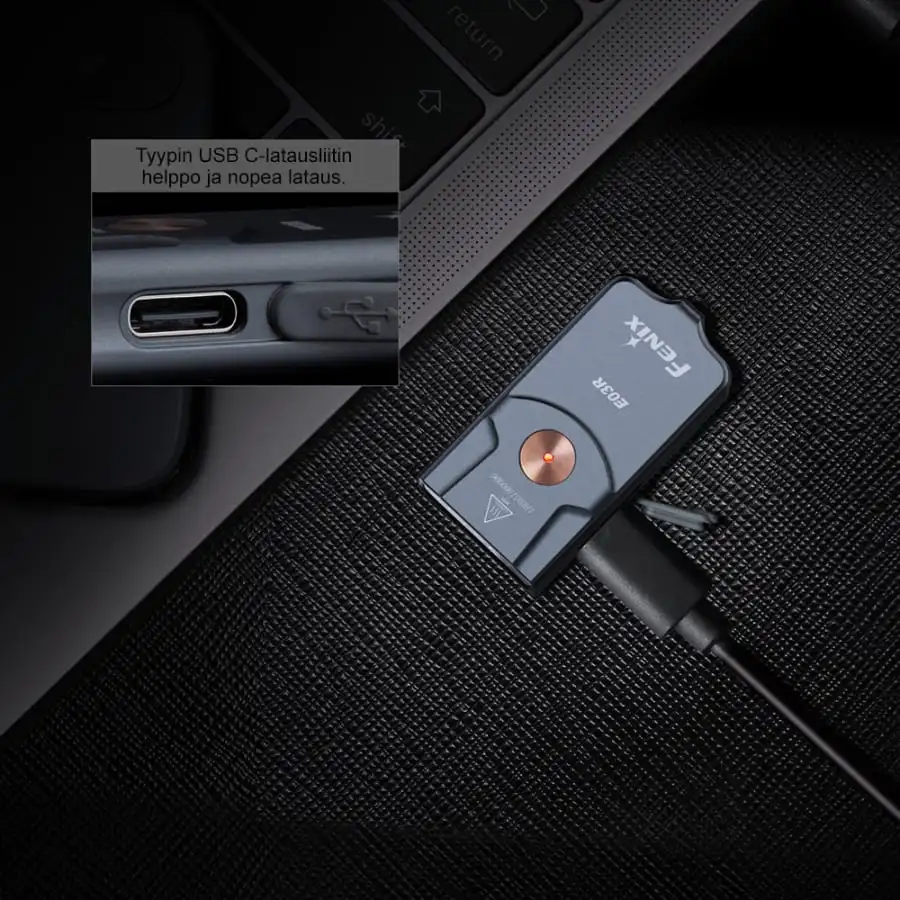 The most powerful mini flashlight ever. It’s easy to call the Fenix E03R a supermini lamp because it’s the most powerful and versatile Fenix really small keychain lamp of all time. This ultra-compact flashlight produces a dazzling max. 260 lumen brightness and it illuminates evenly and widely up to max. up to 42 meters. In addition to the white light, the special feature of the E03R is its red special light, which further expands the use of the lamp, e.g. retaining its user’s low-vision ability in the dark. The durable all-metal construction of the lamp ensures excellent durability in everyday use. The lamp is operated from one of its large push-button switches. With the fast and durable USB C charging connector, you can quickly charge the lamp and return it to working condition when the battery power runs out.