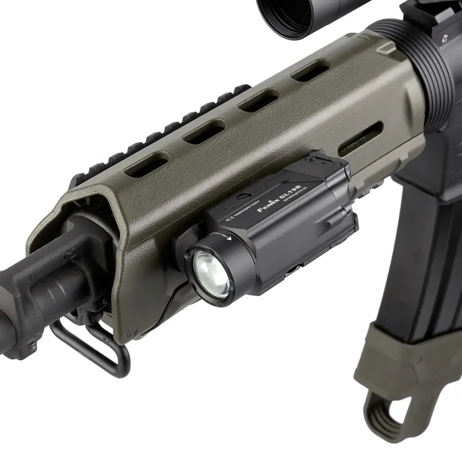 - Leveransinnehåll: Fenix GL19R vapenljus/pistolljus, Fenix ARB-L18-1100P Li-ion batteri, USB-C laddningskabel, GLOCK + MIL-STD-1913 monteringsplattor, utbytbar O-ringstätning, användarmanual .