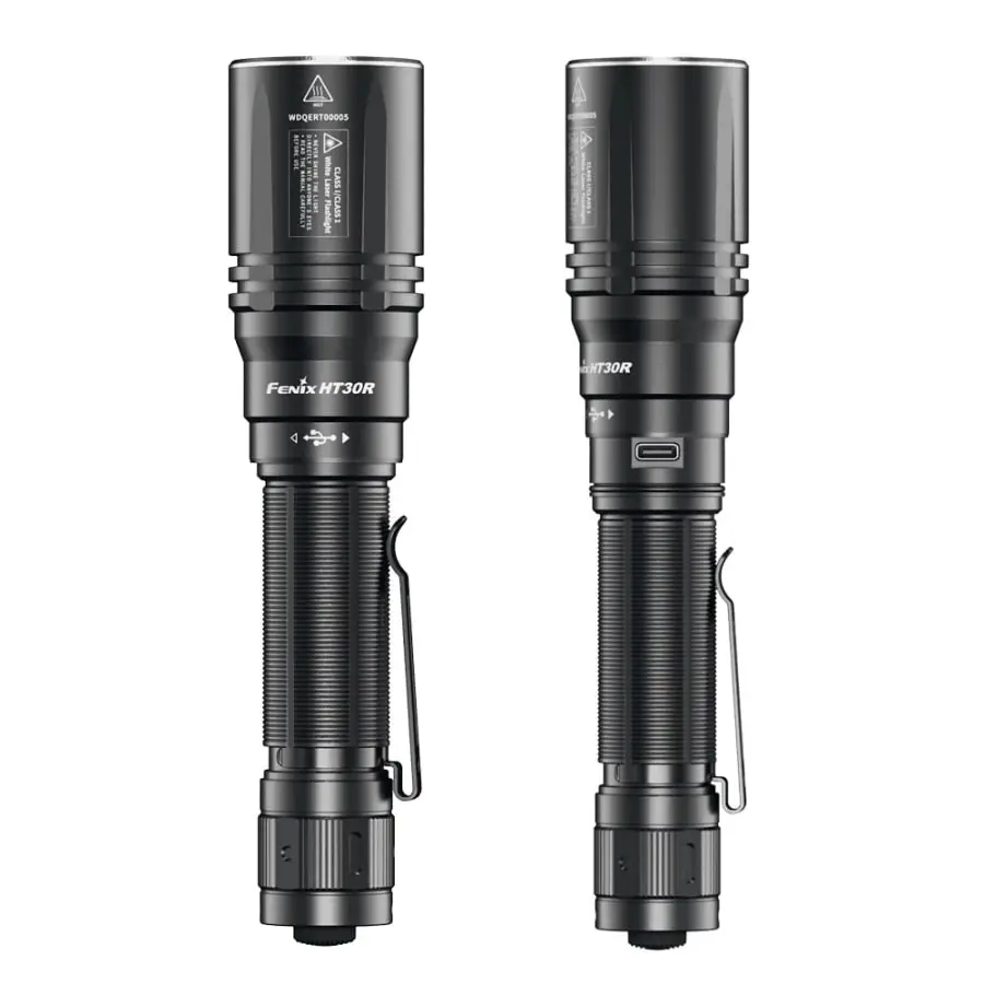 - Scope of delivery: Fenix HT30R laser flashlight, Fenix ARB-L21-5000 V2.0 USB-C rechargeable battery, USB C charging cable, transport case, mounting strap, replaceable O-ring seal x 2, user manual.
