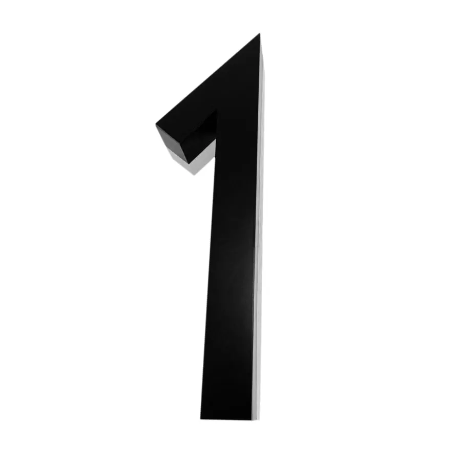 Svart husnummer/bokstav med led-bakgrundsbelysning. Högkvalitativa material och en stark bakgrundsbelysning garanterar synlighet och lång livslängd. Den svarta metallramen är gjord av rostfritt stål (kvalitet 304). led-bakgrundsbelysningen är vattentät.