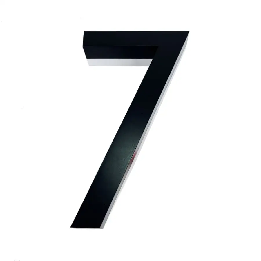 Svart husnummer/bokstav med led-bakgrundsbelysning. Högkvalitativa material och en stark bakgrundsbelysning garanterar synlighet och lång livslängd. Den svarta metallramen är gjord av rostfritt stål (kvalitet 304). led-bakgrundsbelysningen är vattentät.