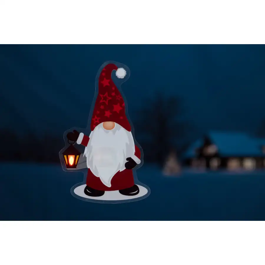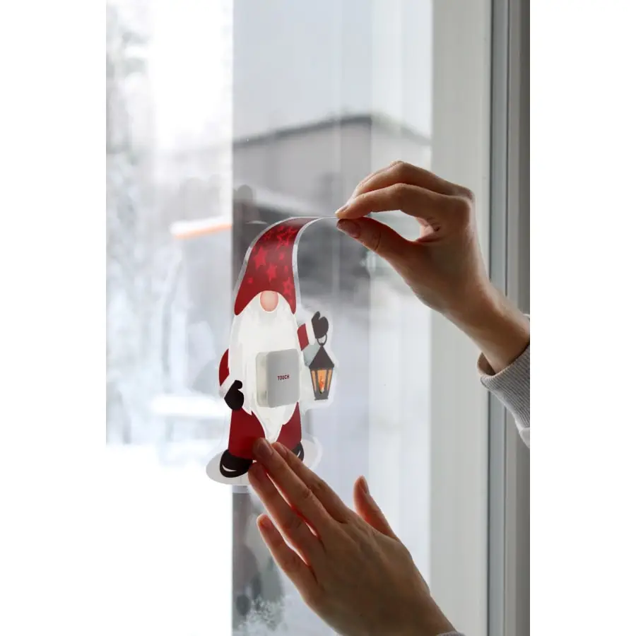 Cosy window sticker with warm white LED light. The electrostatic window sticker is easy to attach to the window and remove after use. 6h timer function. Battery 1 x CR2450 3V (included).