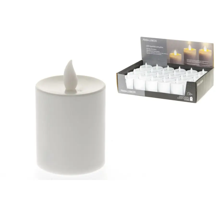 Candle 8 h timer functional light sensor. Operating time 40 days depends on temperature and batteries.