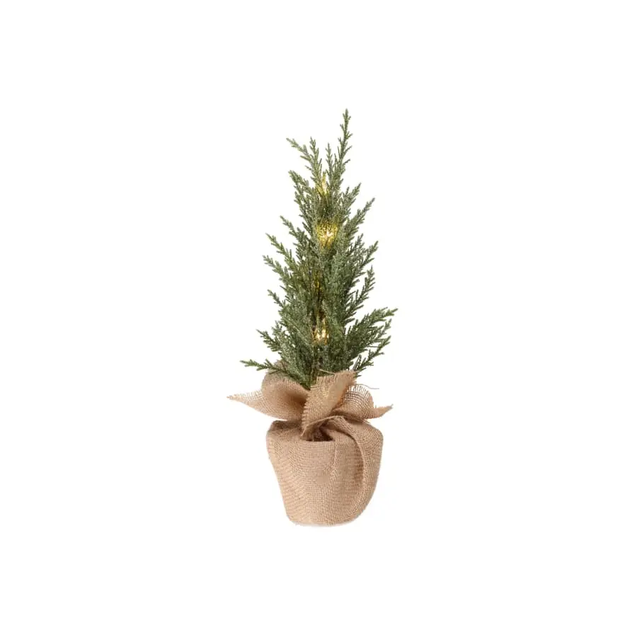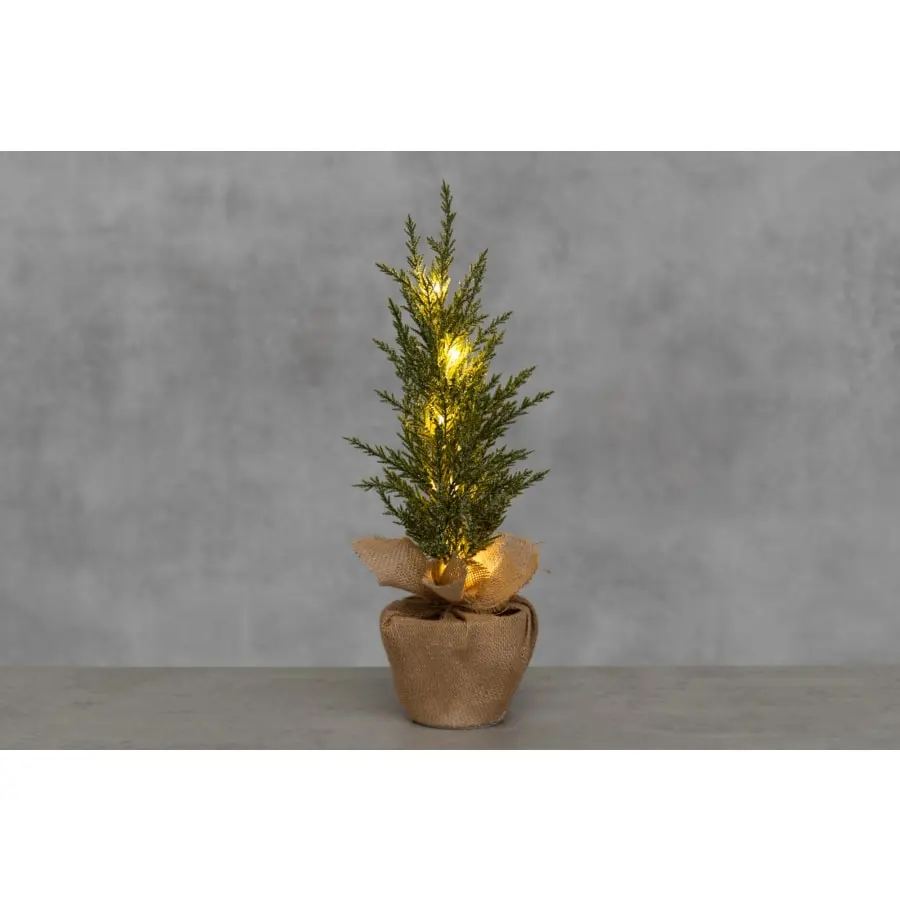 Stylish battery ornamental wood for indoor use. The decorative tree is easy to put almost anywhere, it is just the right size for a table decoration. The 8 LEDs are beautifully illuminated by the tree and the pot is decorated with a jute bag. Decorative tree height 45 cm.