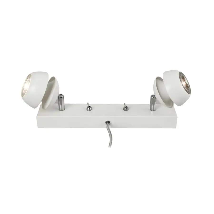 The Comet 2-spot wall lamp is simple, modern and thus belongs to timeless design. The white round finely designed metal spot shade is close to a perfect ball shape, but it is cleverly divided into two parts, through the gap between which the light shines. Comet is an affordable and yet very well finished metal lamp. Thanks to the 360-degree rotatable spot, Comet is easy to direct. Comet is available as a 1- and 3-spotlight, and the same series also includes a 1- and 2-part wall lamp.