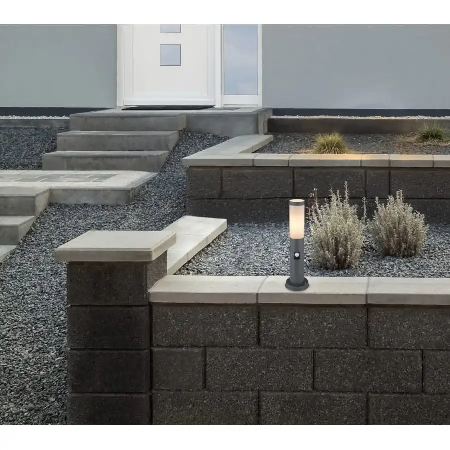 This Boston floor lamp is stylish. Protection IP44, which is ideal for outdoor use. This model is made of stainless steel and opal plastic and measures 45 cm. The lamp is equipped with an E27 socket and you can use the light source you choose yourself (max 60W). For energy saving and longevity, we recommend LED lamps. An additional advantage is the integrated motion sensor (90 °) with a maximum distance of 9 meters. With the help of other floor lamps and wall lamps of the same product series, you can complete the whole.