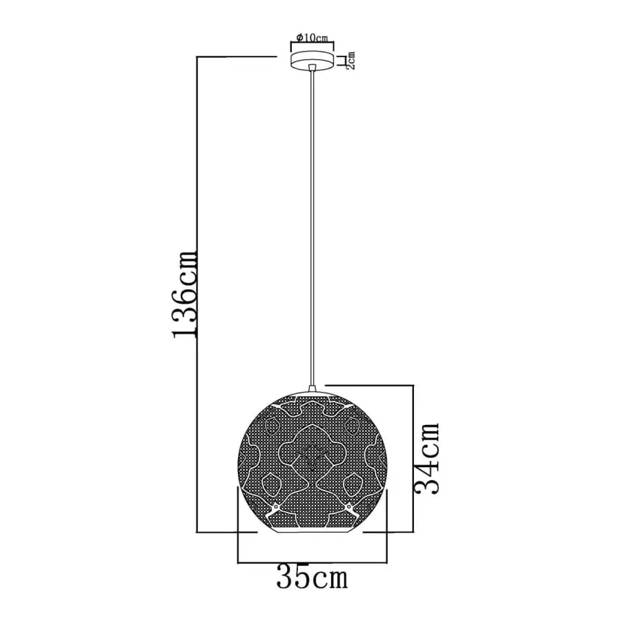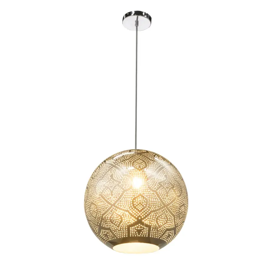 This brilliant lamp guarantees great light for your premises. This chrome pendant lamp (Ø 35 cm) is made of metal. This lamp has an E27 lamp base, which allows you to choose the bulb you want (max. 60 W). It allows you to determine the intensity and color of the light. We recommend LED bulbs due to their long service life and energy efficiency.