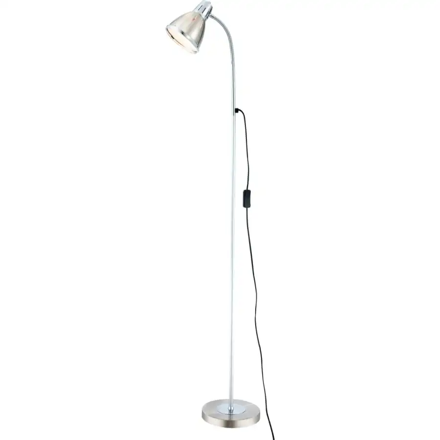 Denna golvlampa är ett dekorativt tillägg till varje vardagsrum. Denna modell är både förkromad och nickelmatt. Ljuset från denna lampa kan riktas som du vill. Denna modell fungerar även med LED-lampor.