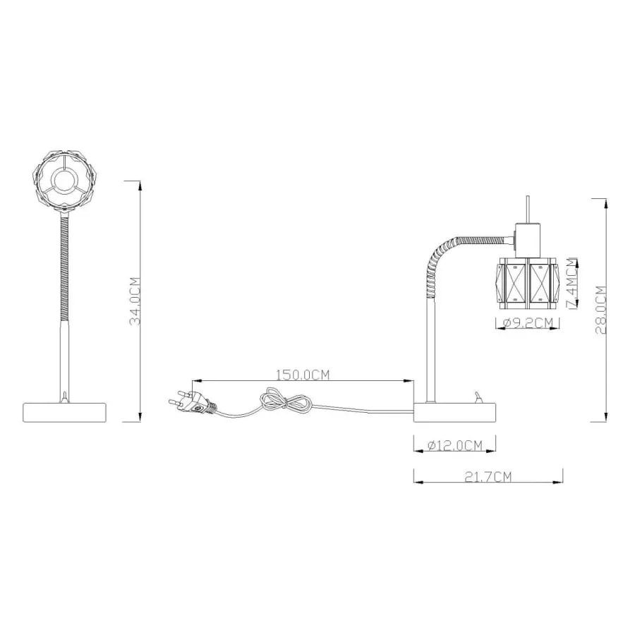 The Kris series table lamp combines high-quality materials and design. Lamp shade made of clear glass crystals and chromed metal. There is a power switch at the foot of the lamp. The available E14 lamp base enables free selection of the light source and thus also the choice of light intensity and color (max. 40 W). For energy saving and longevity, we recommend LED lamps.