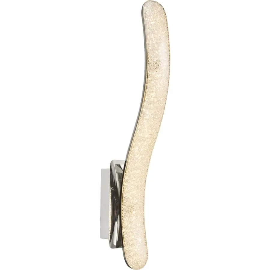 Denna 45 cm höga vägglampa från Nabro-serien framhäver mindre rum på ett underbart sätt. Denna lampfot är gjord av krom och akryl. Glittrande akrylkristaller gör denna modell unik i utseende. Färgtemperaturen på ljuset är 3500 Kelvin, vilket är en fin varmvit nyans, och ljusstyrkan är 935 lumen. Det här är en underbar kombination. Denna produkt passar perfekt med de andra produkterna i serien