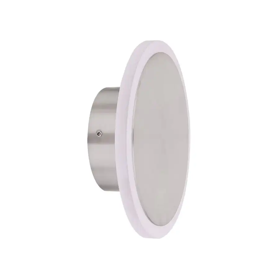 Detta är en universell vägglampa (Ø 130 mm). Den vita metall- och opalplastvägglampan ger ett underbart varmt, 3000 kelvin vitt ljus. Lampan har 230 lumen (3 W) ljusstyrka. Med de andra modellerna i denna serie kan du komplettera din inredning.