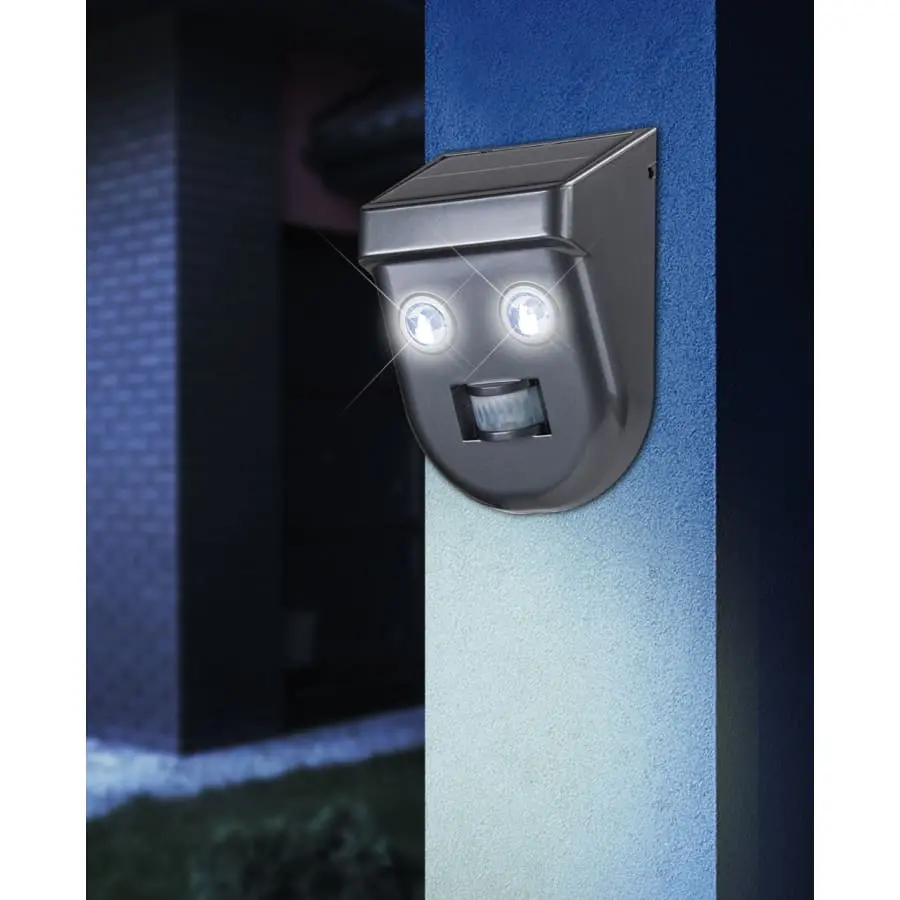 Denna moderna solcellslampa av antracitplast imponerar framför allt med sina praktiska egenskaper. Tack vare skyddsklassen IP65 är denna produkt skyddad mot vattenstrålar och dammpartiklar och kan därför användas i badrummet eller utomhus. Dessutom har denna produkt en rörelsesensor (120 °) för ett avstånd på 10 meter. Ljusintensiteten på 360 lumen ger optimal belysning.