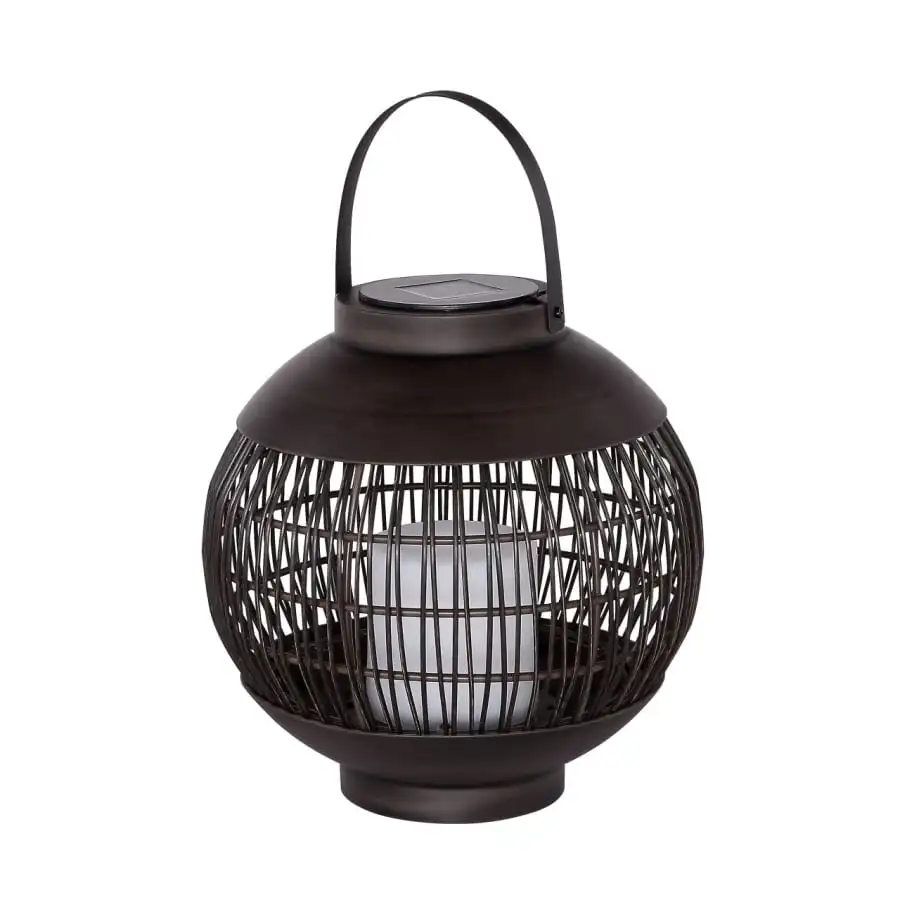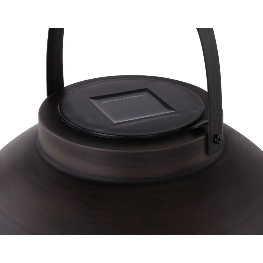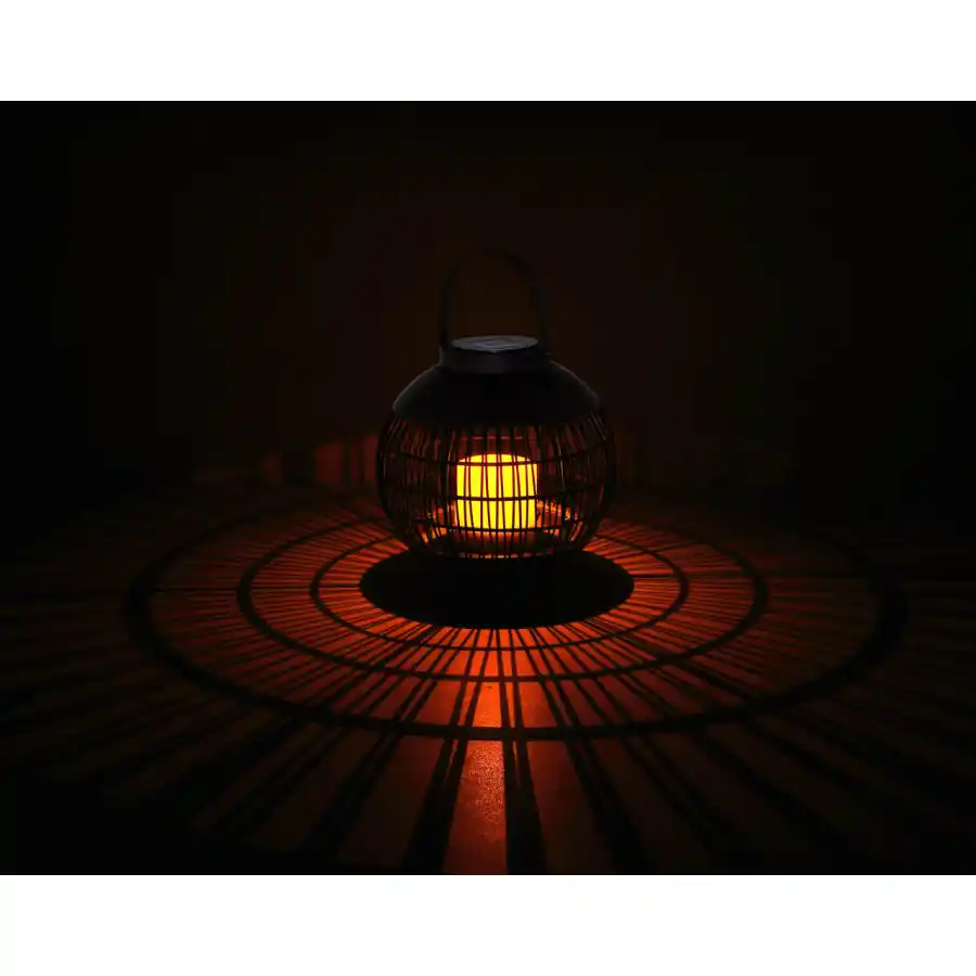This spherical (Ø 22 cm) solar lamp can be placed on a base or hung. The case with the handle is made of black metal. The light of the white plastic candle illuminates nicely through the grid net. The outdoor lamp illuminates for up to 8 hours and creates a pleasant atmosphere with its candle effect. This solar light with 0.08W LED has a built-in on/off switch and is perfect for outdoor use with its IP44 protection.