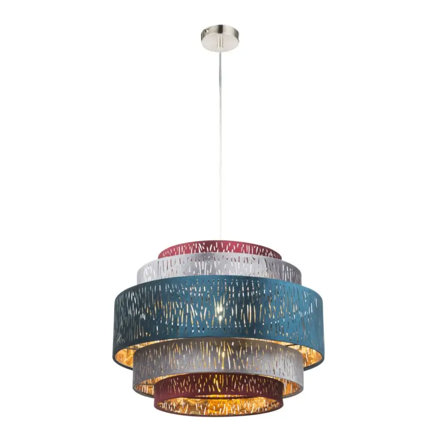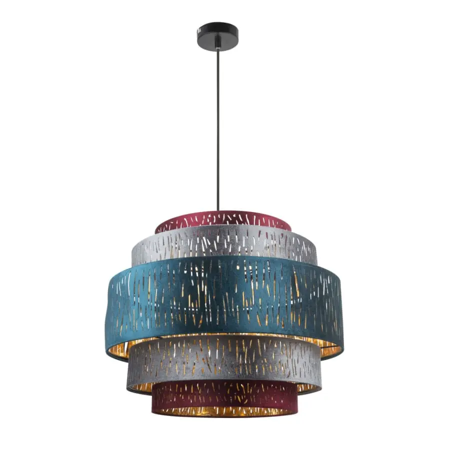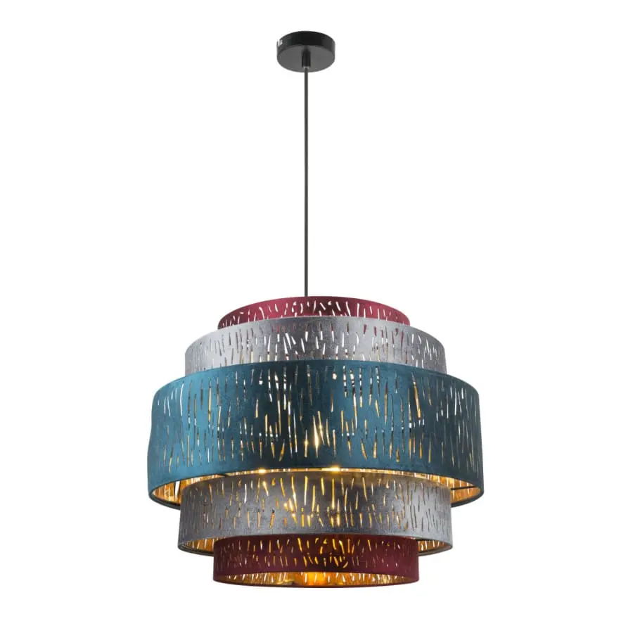 This pendant light from the Ticon series is a very special home accessory. Its diameter is 50 cm, and it is suitable for both the living room and the bedroom. Its lampshade is covered with a velvet fabric and the light shines impressively through its holes. In addition, the lamp has a power switch. This model has an E14 lamp base and fits a maximum 25 W bulb. We recommend LED lights due to power saving and longevity.