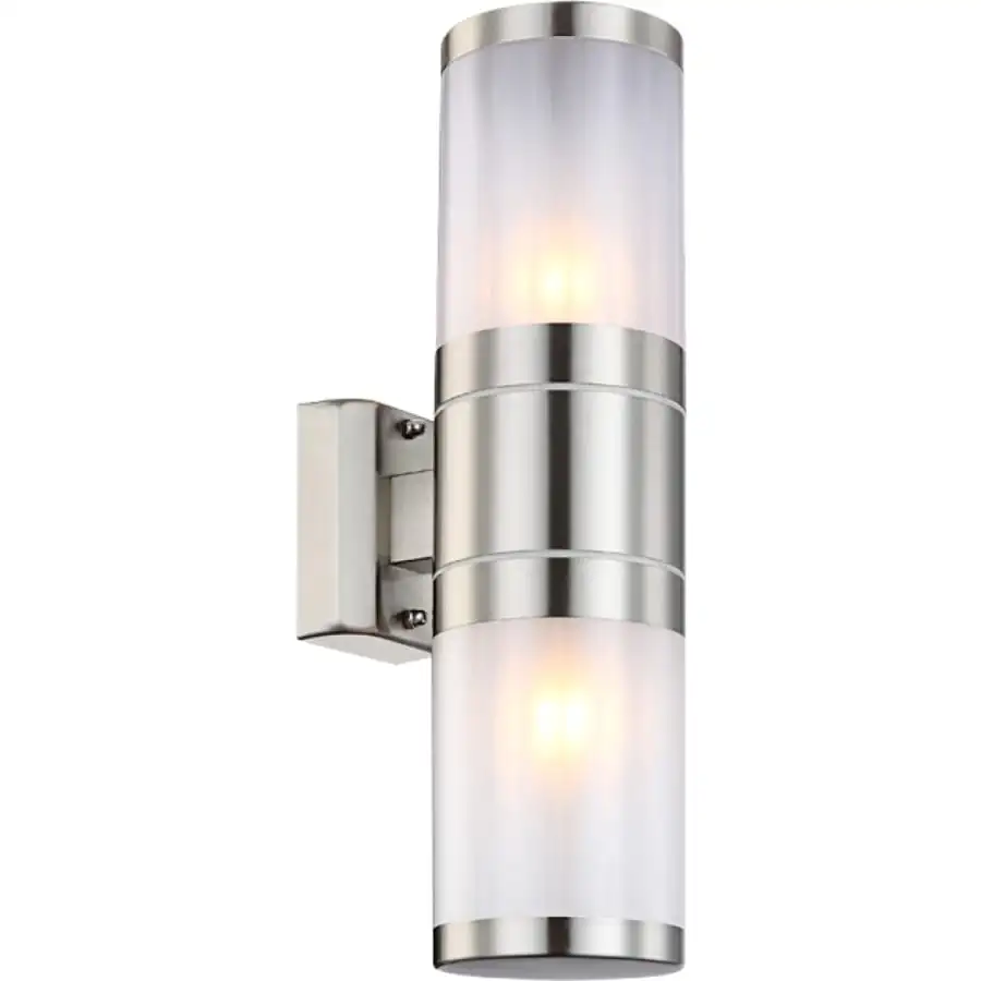 Denna moderna design utomhuslampa tillhör Xeloo-serien och är gjord av rostfritt stål och opalplast. Med skyddsklass IP44, idealisk för utomhusbruk. Två E27 lampsotag (max 60W) för LED-lampor. Med hjälp av de andra vackra vägglamporna i denna serie kan du komplettera utomhusutrymmena.