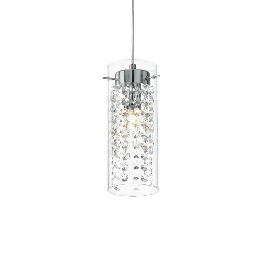 A wonderful crystal pendant lamp. Beautiful crystal pendants hang inside the clear glass dome. The lamp is attached to the hook attachment. Light output 1xE14, bulb not included in the package. Diameter 13.5cm and height 225cm.