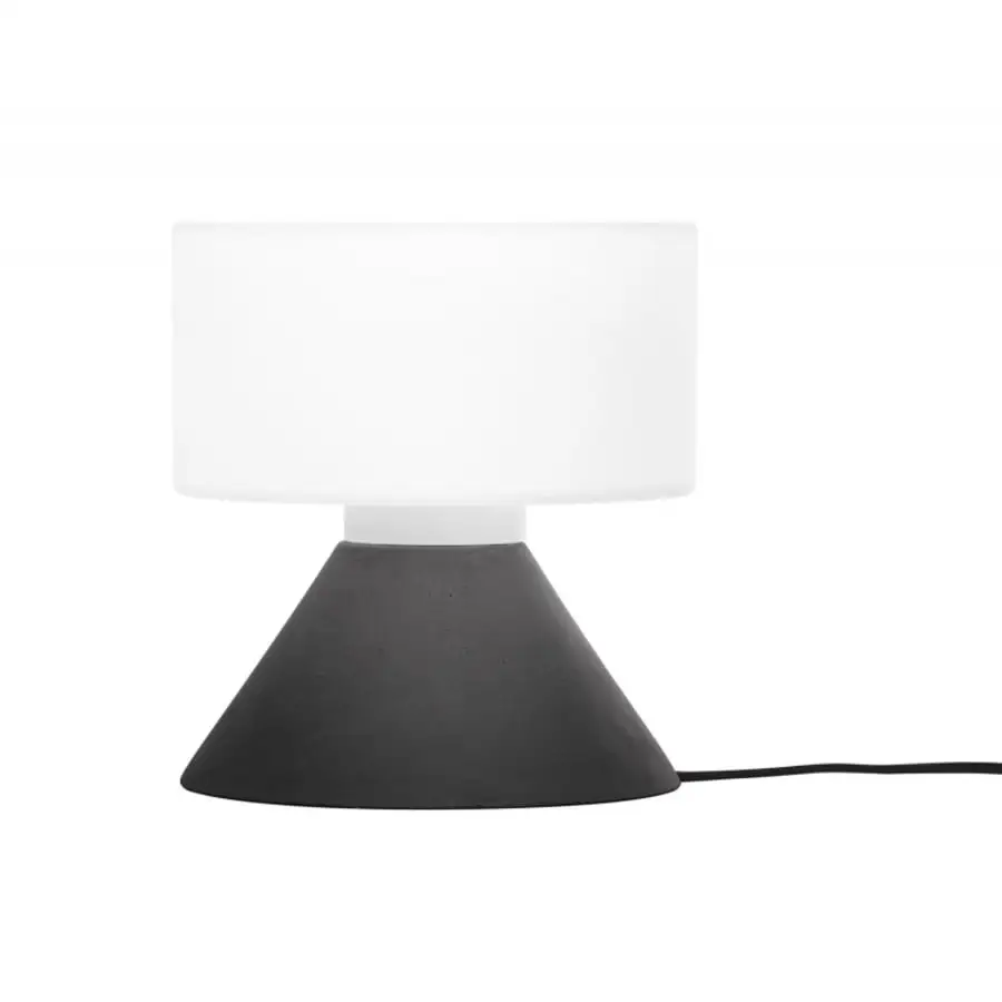Concrete is an atmospheric table lamp made of concrete and mouth-blown glass. It is recommended to use an LED light source in this lamp. Available with a dark gray or light concrete base.