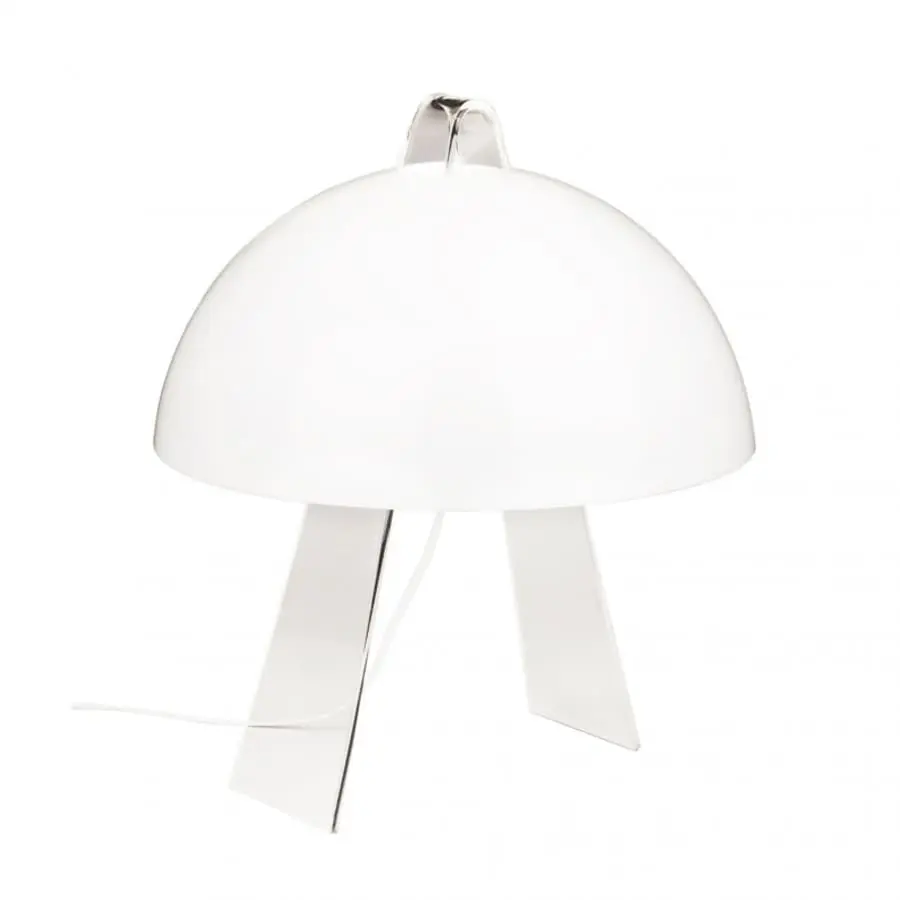The main idea of Innolux Kuutamo is the leg part shaped like the letter A, made of clear acrylic, which supports the dome. The dome distributes the light beautifully.