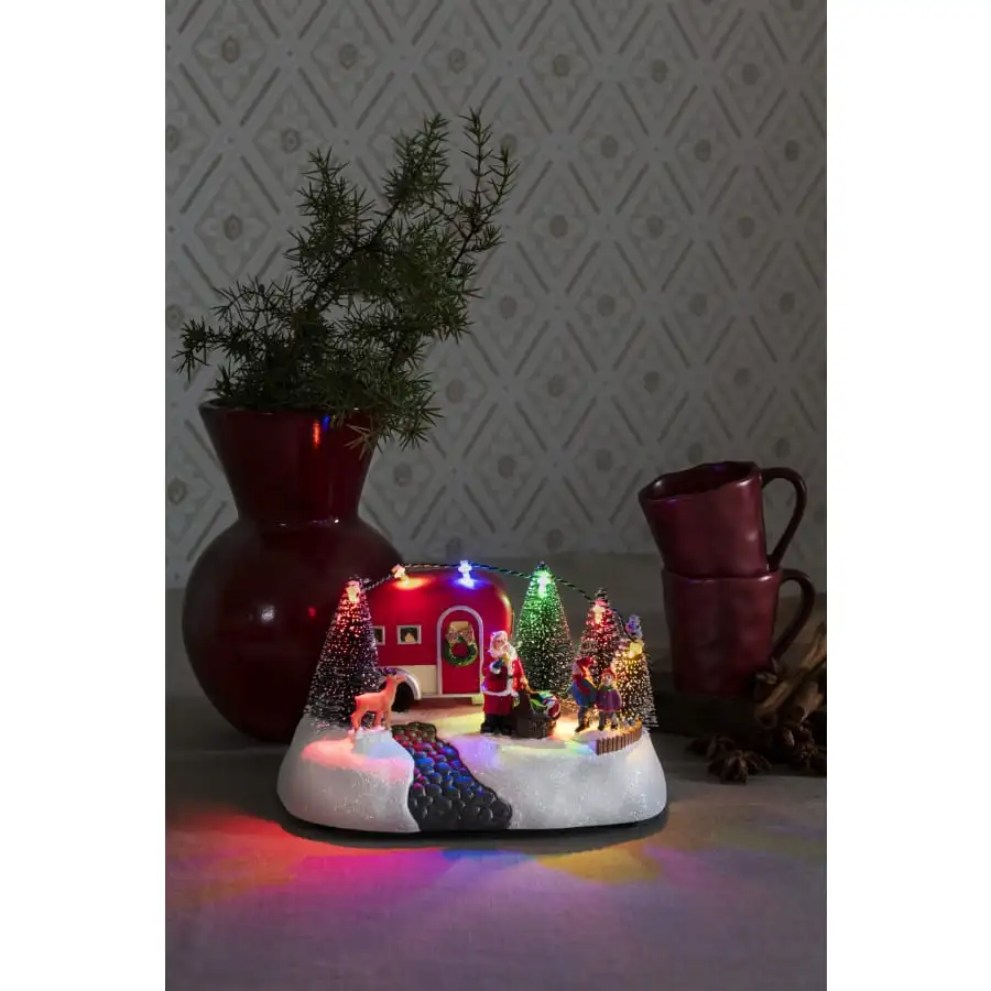 Bordsdekoration husvagn och jultomte, 6 x LED.