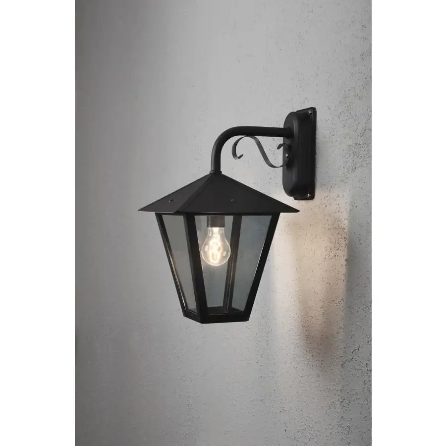 Benu vägglampa, dunmodell, svartmålad aluminium, rökt glas.