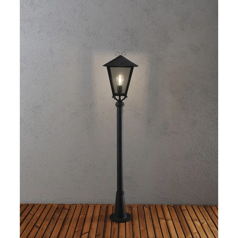 Benu low column lamp, including column. Black painted aluminum, smoke glasses.