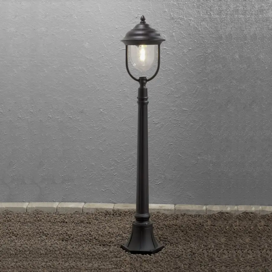 Konstsmide Parma 7225-750 pole lamp, IP43, length 24 cm, width 24 cm, height 118 cm, includes pole, clear acrylic glass, aluminum body, body color black, bulb E27 max 1x75W not included, bulb max height 130 mm, spare glasses can be ordered separately with code 7200-101