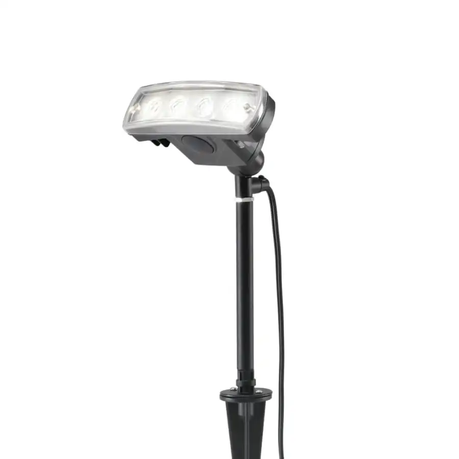 Konstsmide Amalfi 7444-000 12V trädgårdsstrålkastare, IP44, längd 15 cm, bredd 12 cm, höjd 40 cm, klar akryl, kropp aluminium, kroppsfärg svart, fast LED 4W, 280lm, 3500K, anslutningskabel 10 m, 12V/12W transformator , i kartongen jordspets och väggfäste medföljer, reservtransformator kan beställas separat med kod 7483-000, lampan kan användas ensam eller den kan kopplas in som en del av Konstsmides 12V system, till vilken det går att ansluta flera olika typer av lampor och tillbehör