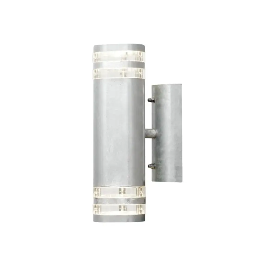 Konstsmide Modena 7516-320 vägglampa utomhus, IP44, längd 14,5 cm, bredd 8,5 cm, höjd 30 cm, klarglas och akrylband, stålram, ramfärg galvaniserat stål, glödlampa GU10 max 2x35W ingår ej, glödlampa max höjd 64 mm upp-ned-ljus, kan kedjas