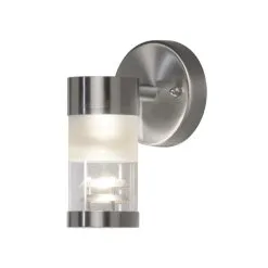 Konstsmide Bolzano 7594-000 utomhusvägglampa, IP44, längd 11,5 cm, bredd 9 cm, höjd 16,5 cm, frostat/klart glas, stålstomme, kroppsfärg rostfritt stål, glödlampa GU10 max 1x35W ingår ej, glödlampa max höjd 68 mm, downlight , monteringssockel 449-750 kan köpas separat för ytkabel, reservglas kan beställas med kod 7592-022