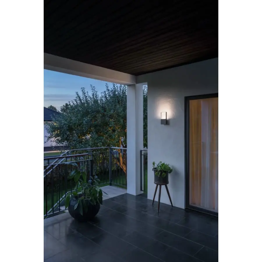 Konstsmide Matera 7850-370 vägglampa utomhus, IP54, längd 5,5 cm, bredd 12,5 cm, höjd 24,50 cm, frostad akryl, ram aluminium, ramfärg mörkgrå, 400lm, fast LED 1x6W, 3000K