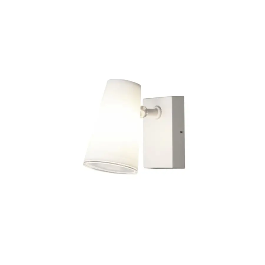 Konstsmide Fano 7872-250 vägglampa utomhus, IP54, längd 21 cm, bredd 18 cm, höjd 12 cm, opal akryl, aluminiumstomme, kroppsfärg vit, glödlampa E27 max 1x25W ingår ej, glödlampa max höjd 125 mm, kan kedjas, ytmontering möjlig