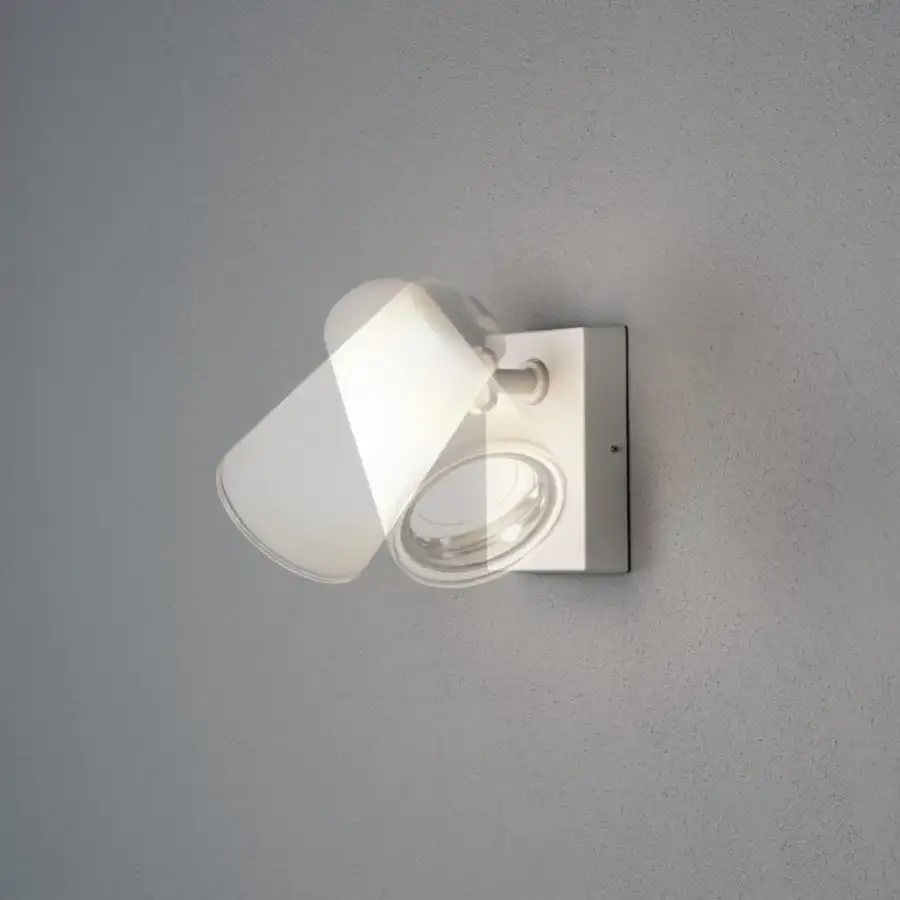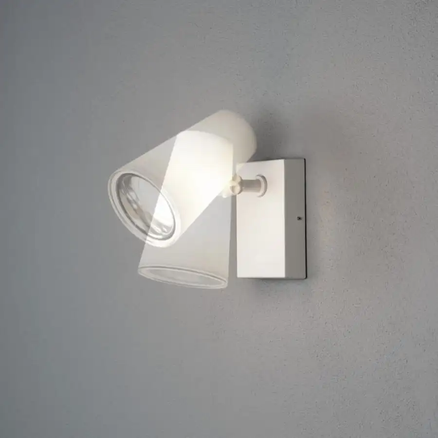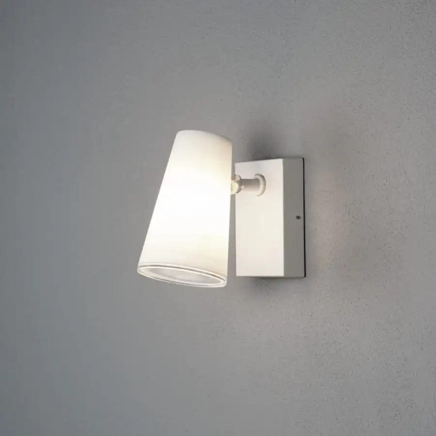 Konstsmide Fano 7872-250 outdoor wall lamp, IP54, length 21 cm, width 18 cm, height 12 cm, opal acrylic, aluminum body, body color white, bulb E27 max 1x25W not included, bulb max height 125 mm, can be chained, surface mounting possible