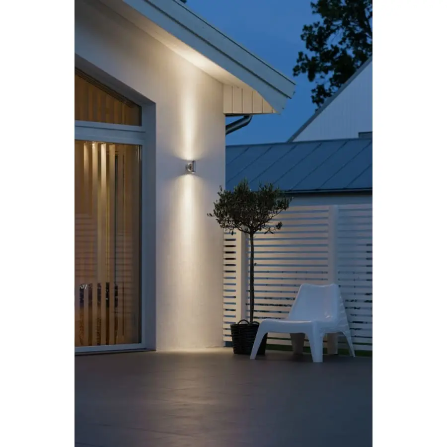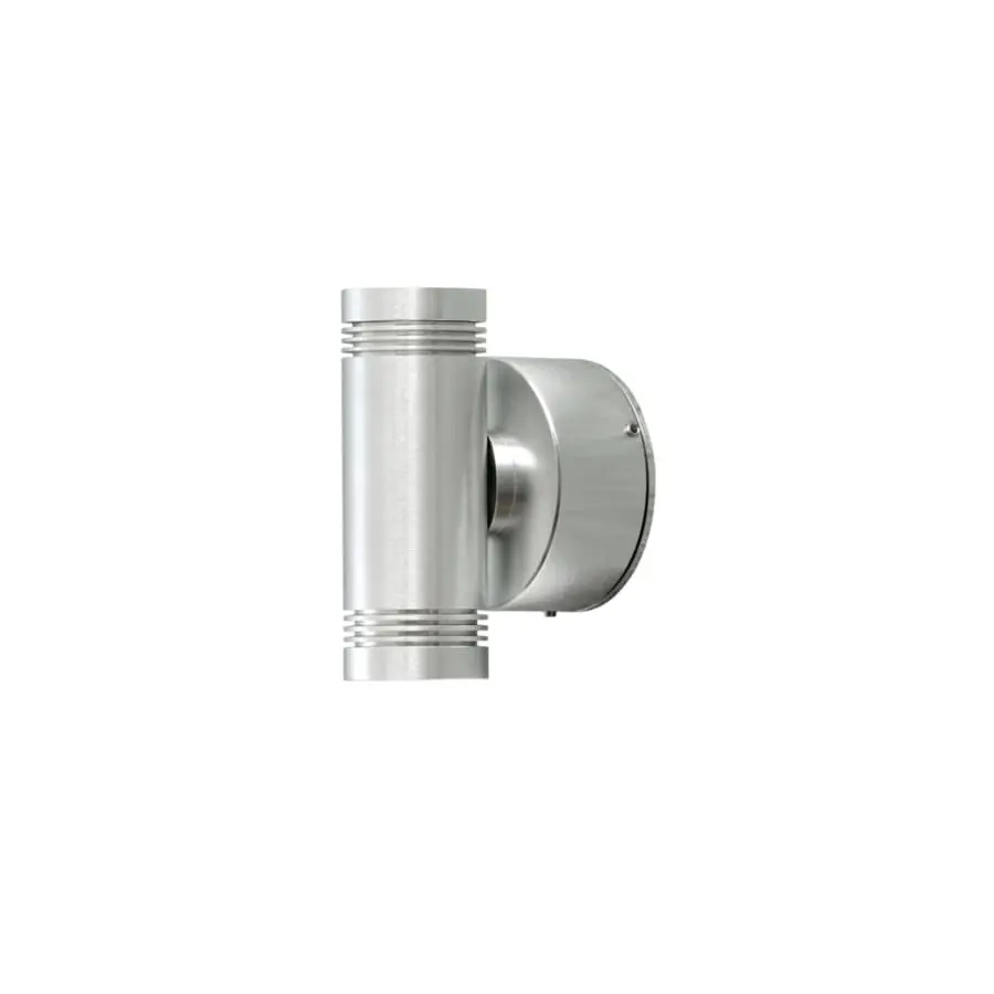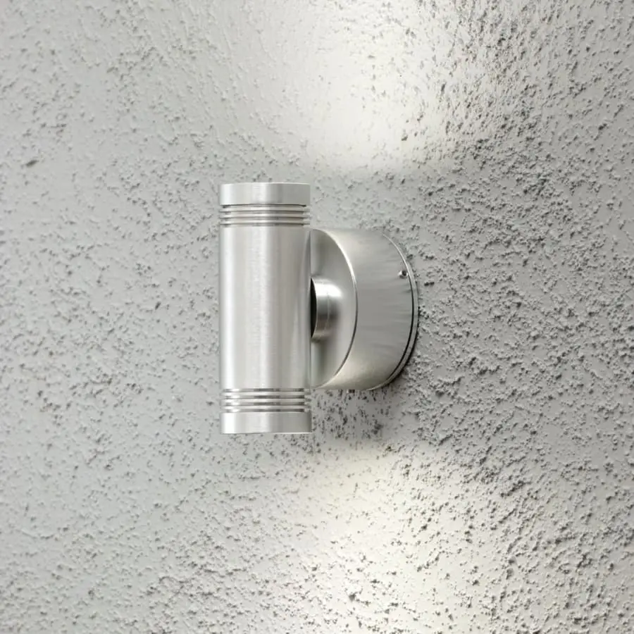Konstsmide Monza 7929-310 utomhusvägglampa, IP54, längd 8,5 cm, bredd 4,5 cm, höjd 12,5 cm, klarglas, aluminiumram, aluminium ramfärg, 160lm, fast LED 2x1W, 3000K, upp-ned ljus