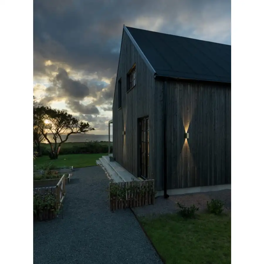 Konstsmide Cremona 7940-800 utomhusvägglampa, IP54, längd 11 cm, bredd 8 cm, höjd 17 cm, klarglas, mässing, kroppsfärg mässing, 600lm, fast LED 2x3W, 3000K, upp-ned-ljus, justerbar ljusöppningsvinkel mellan 0-90 grader