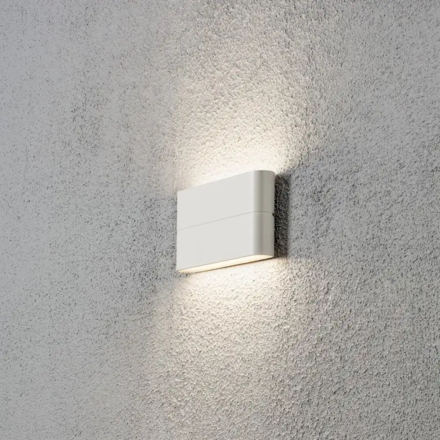 Konstsmide Chieri 7973-250 utomhusvägglampa, IP54, längd 3 cm, bredd 17 cm, höjd 9 cm, opal akryl, kropp aluminium, kroppsfärg vit, 950lm, fast LED 2x6W, 3000K, upp och ner ljus
