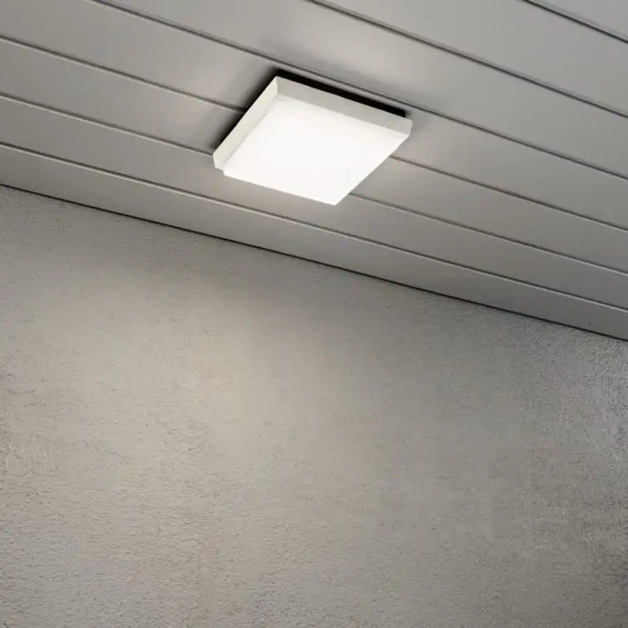Konstsmide Cesena 7975-250 ceiling/outdoor wall lamp, IP54, length 4.5 cm, width 17.5 cm, height 17.5 cm, opal polycarbonate, aluminum body, body color white, 900lm, fixed LED 1x10W, 3000K