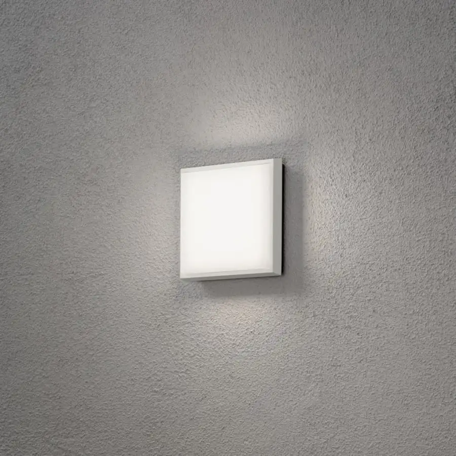 Konstsmide Cesena 7975-250 tak-/utomhusvägglampa, IP54, längd 4,5 cm, bredd 17,5 cm, höjd 17,5 cm, opal polykarbonat, aluminiumstomme, kroppsfärg vit, 900lm, fast LED 1x10W, 3000K
