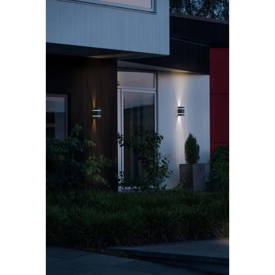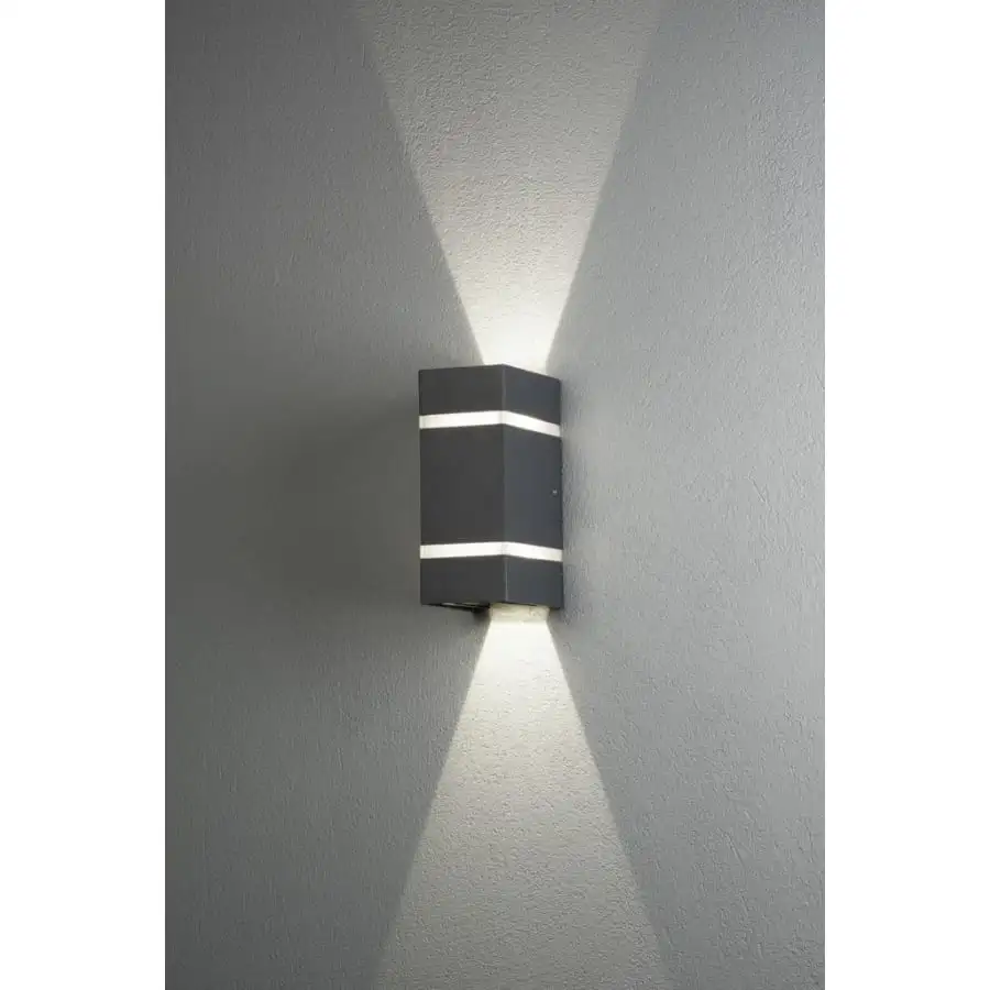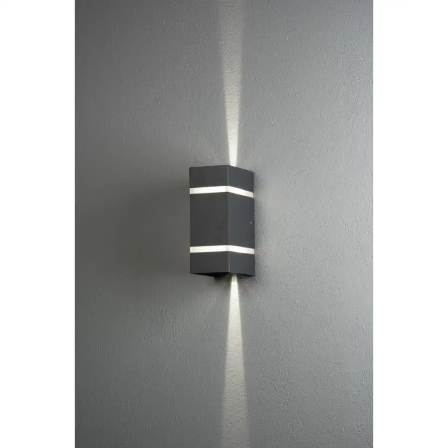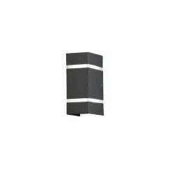 Konstsmide Cremona 7998-370 utomhusvägglampa, IP54, längd 11,5 cm, bredd 8,5 cm, höjd 19,5 cm, klart glas och opala akrylränder, aluminiumstomme, kroppsfärg mörkgrå, 600lm, fast LED 2x3W, 3000K, ljusöppningsvinkel justerbar mellan 0-90 grader, kan kedjas