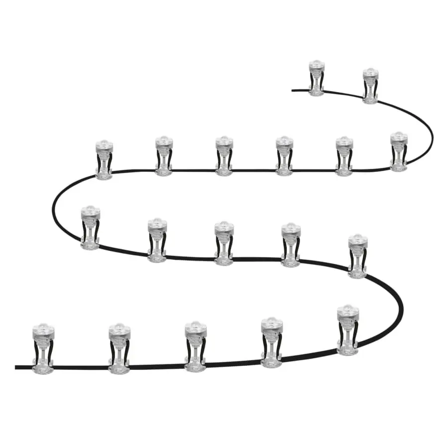 A light set of eighteen GARDEN DOT lights. The length of the connection cable is 5 meters and the length of the cable between the lights is 0.5 meters. IP66 rated, perfect for outdoor use.