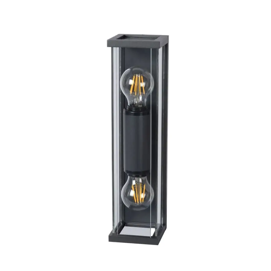 Decorative and stylish. This outdoor wall lamp is a great combination of sleek aluminum and real glass. The high-quality design of the outdoor lamp creates a unique atmosphere and a particularly beautiful impression. Two places for the light source, the light spreads both above and below. For example, to welcome you to the front door or to create comfort on the terrace. You can define the tunnel yourself – the outdoor light is easy to connect to an external dimmer.