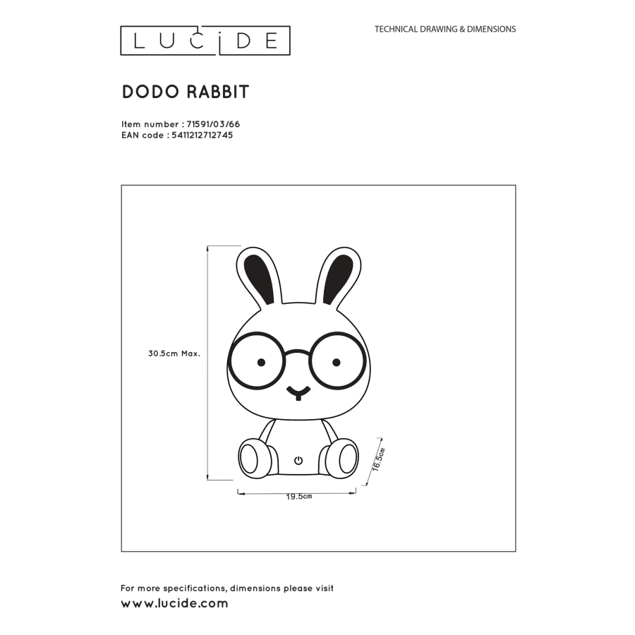 Lägg till din nya vän till din älskade dotter eller son i deras rum. Denna djurbordslampa med ett fint namn, Dodo, kommer att ge barn söta drömmar. Dodos utseende och mjuka ljus gör den till ett perfekt komplement till alla barnrum. Denna bordslampa är tillverkad av högkvalitativ ABS, vilket är ett barnvänligt alternativ till vanlig plast. Med lampans inbyggda dimmer kan du justera lämplig ljusintensitet, vilket denna barnbordslampa sprider brett. Dodo finns i olika versioner, såsom nallebjörn, kanin eller groda.