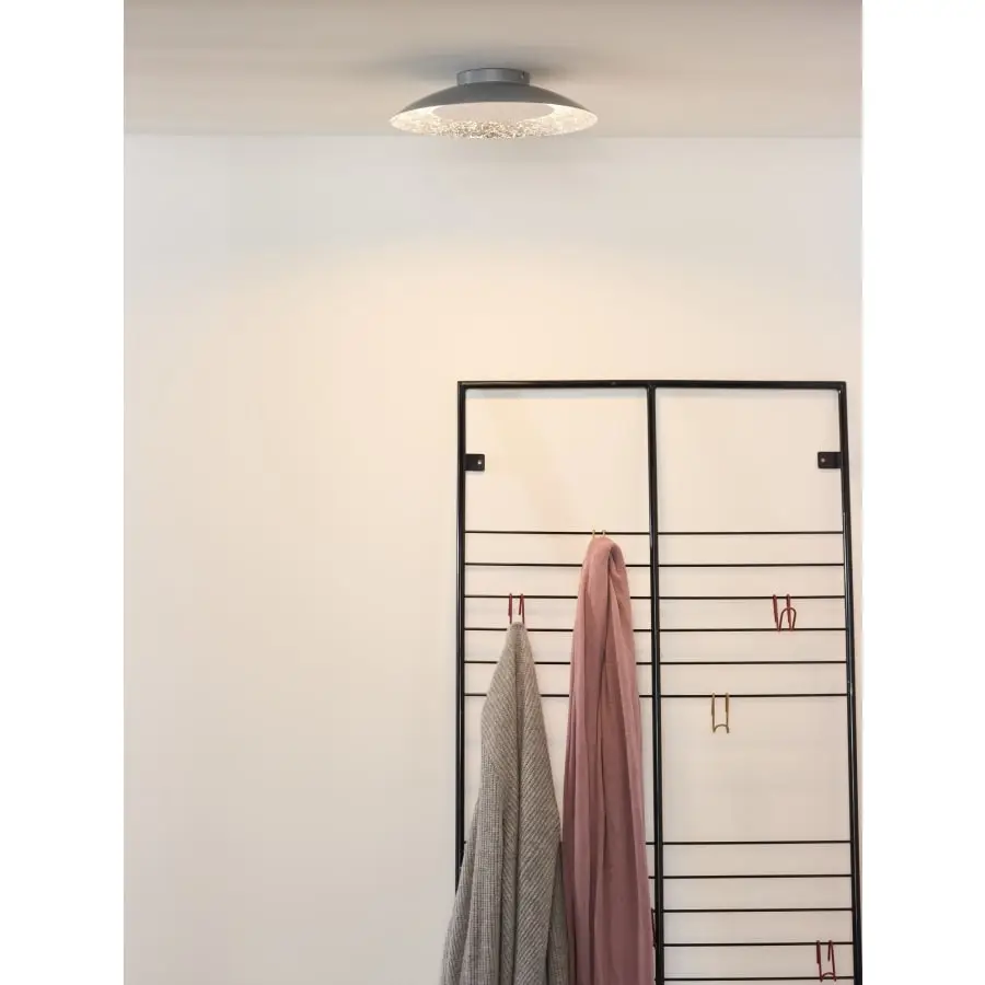 It is striking. Foskal is a unique ceiling light with a diameter of 34.5 centimeters for living spaces or halls. The smart silver-colored lamp is made entirely of steel and thanks to the reflection of light, it guarantees an atmosphere with its hidden light source. An LED light source is possible when you use Foskal and the light source is included in the delivery. This ceiling light looks classic, but with its 6 watts, it provides a lot of light in your house.