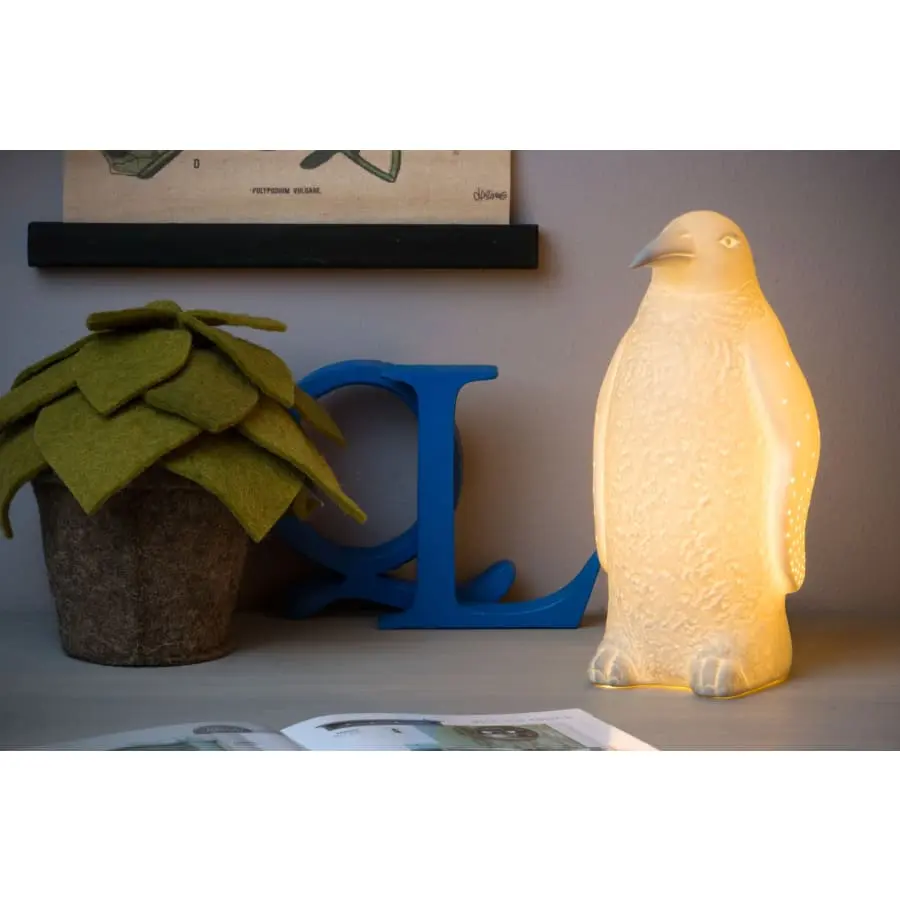 Lucides PENGUIN bordslampa är ett ”måste”-köp för riktiga djurälskare. Vacker, rolig och söt allt som allt. Eftersom tillverkningsmaterialet för denna lampa är keramiskt ger ljuskällan ett vackert sken och en varm och mysig atmosfär.